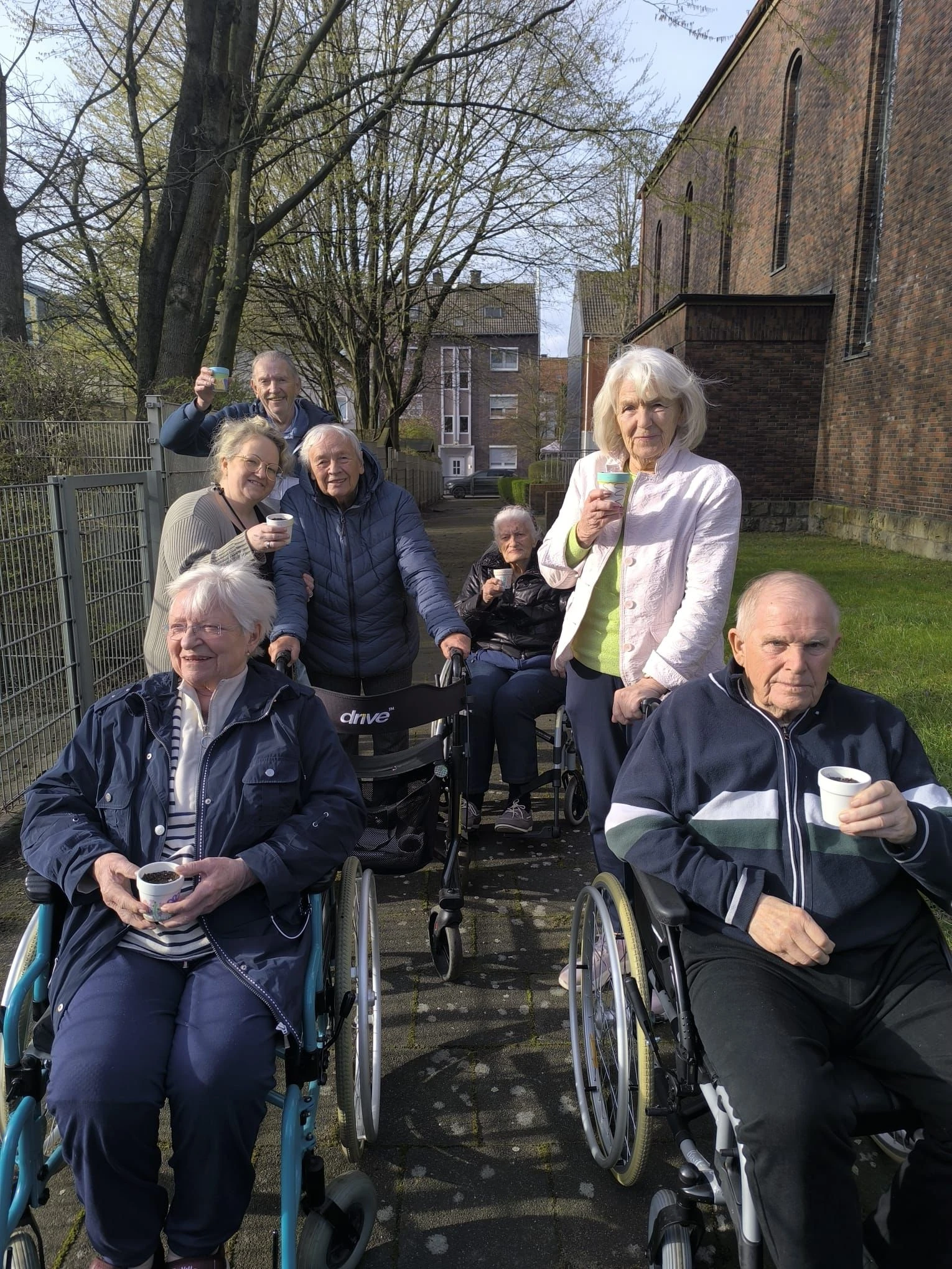 Die Bewohnerinnen und Bewohner unseres Hauses haben sich sehr engagiert und gemeinsam die Beete aufgebaut und mit Erde befüllt. Herr Denert war dabei besonders aktiv und hat tatkräftig mitgeholfen. Auch die anderen Bewohnerinnen und Bewohner haben mit guten Ratschlägen und Ideen zur späteren Bepflanzung beigetragen, während sie sich aufgrund der (fast) winterlichen Temperaturen lieber einen gemütlichen Platz an der Fensterfront gesucht haben.