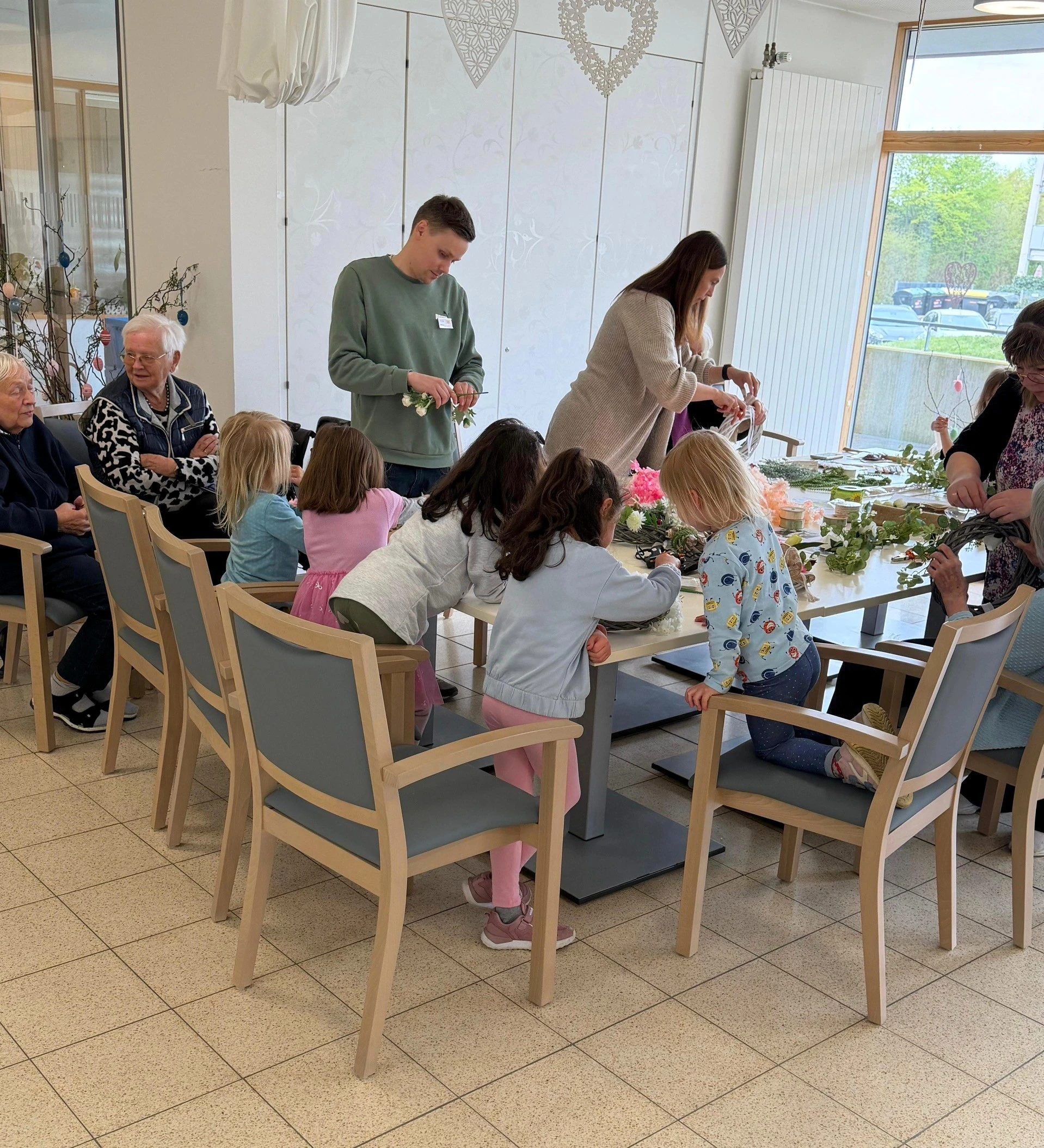 Apr 2026 - Der Frühling hält Einzug – und das wurde bei uns gemeinsam kreativ gefeiert. Zusammen mit den Kindern der AWO-Kindertagesstätte haben unsere Bewohnerinnen und Bewohner fröhliche Frühlingskränze gebastelt.