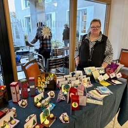 Dez 2023 - Unser Adventsbasar war klein, aber gemütlich und festlich. Bei Kerzenschein und Waffelduft stöberten unsere Bewohnerinnen und Bewohner durch die Stände und erwarben das ein oder andere schöne Weihnachtsgeschenk. Zum Abschluss gab es noch leckere Grillwürstchen.