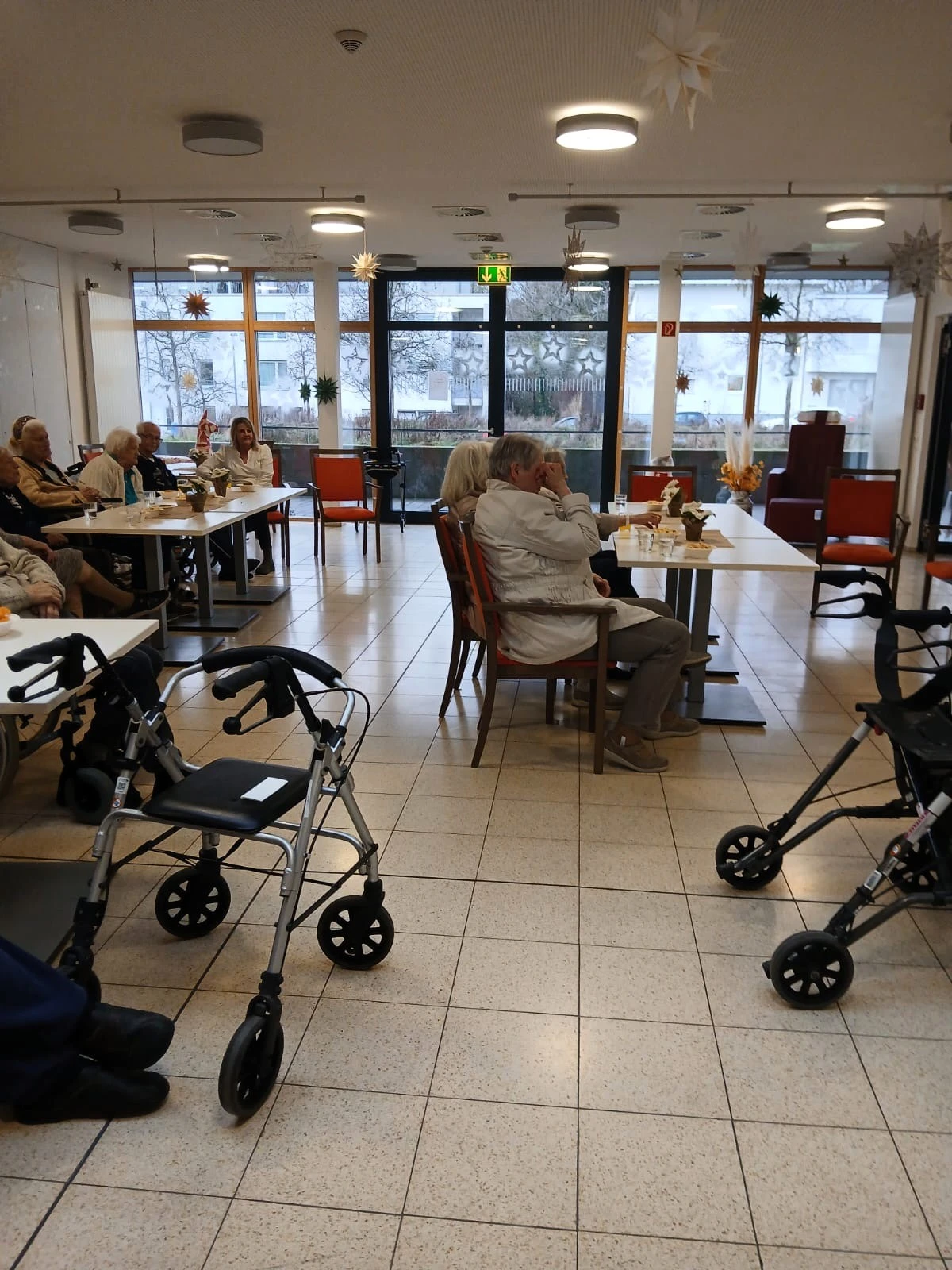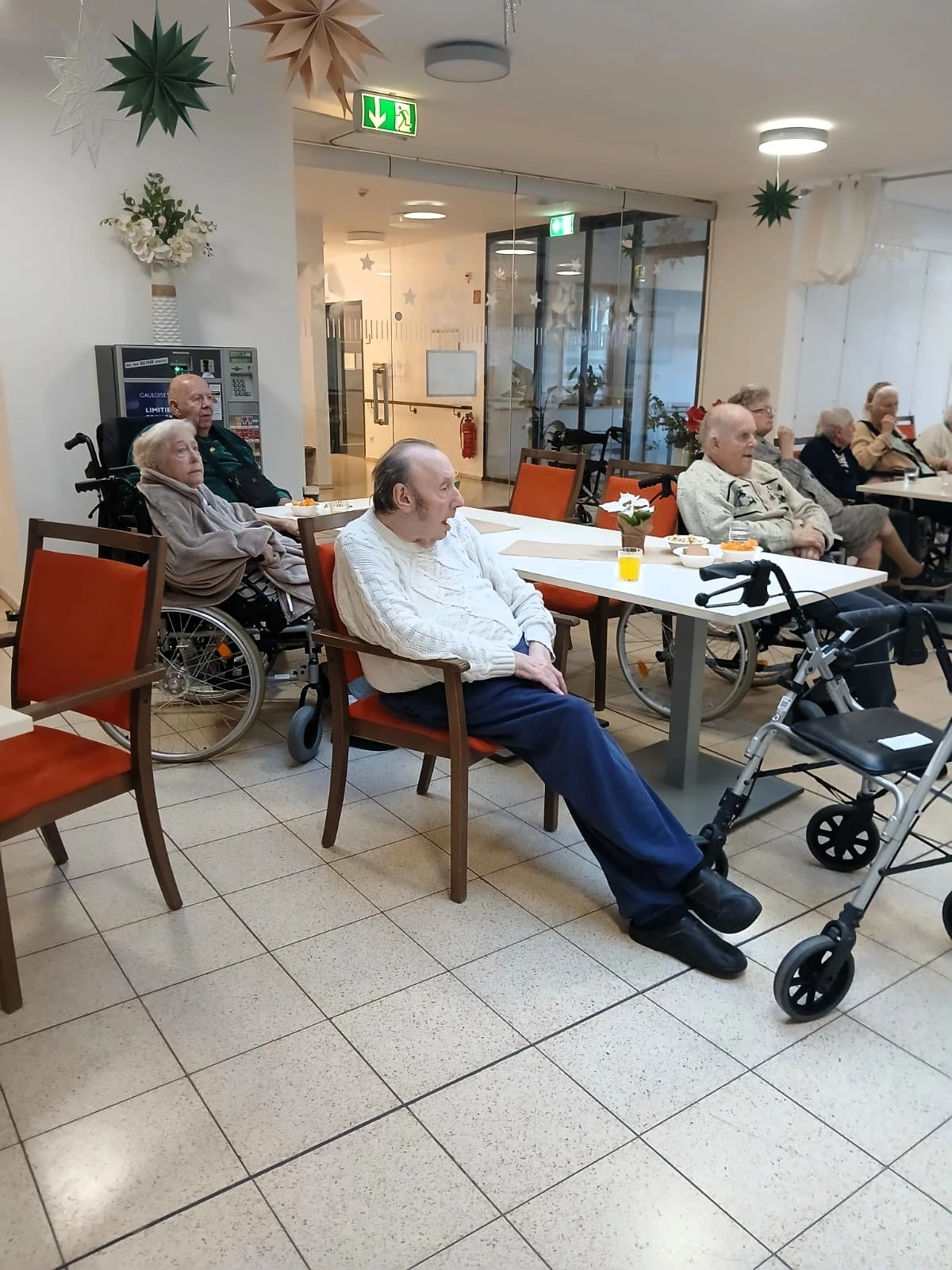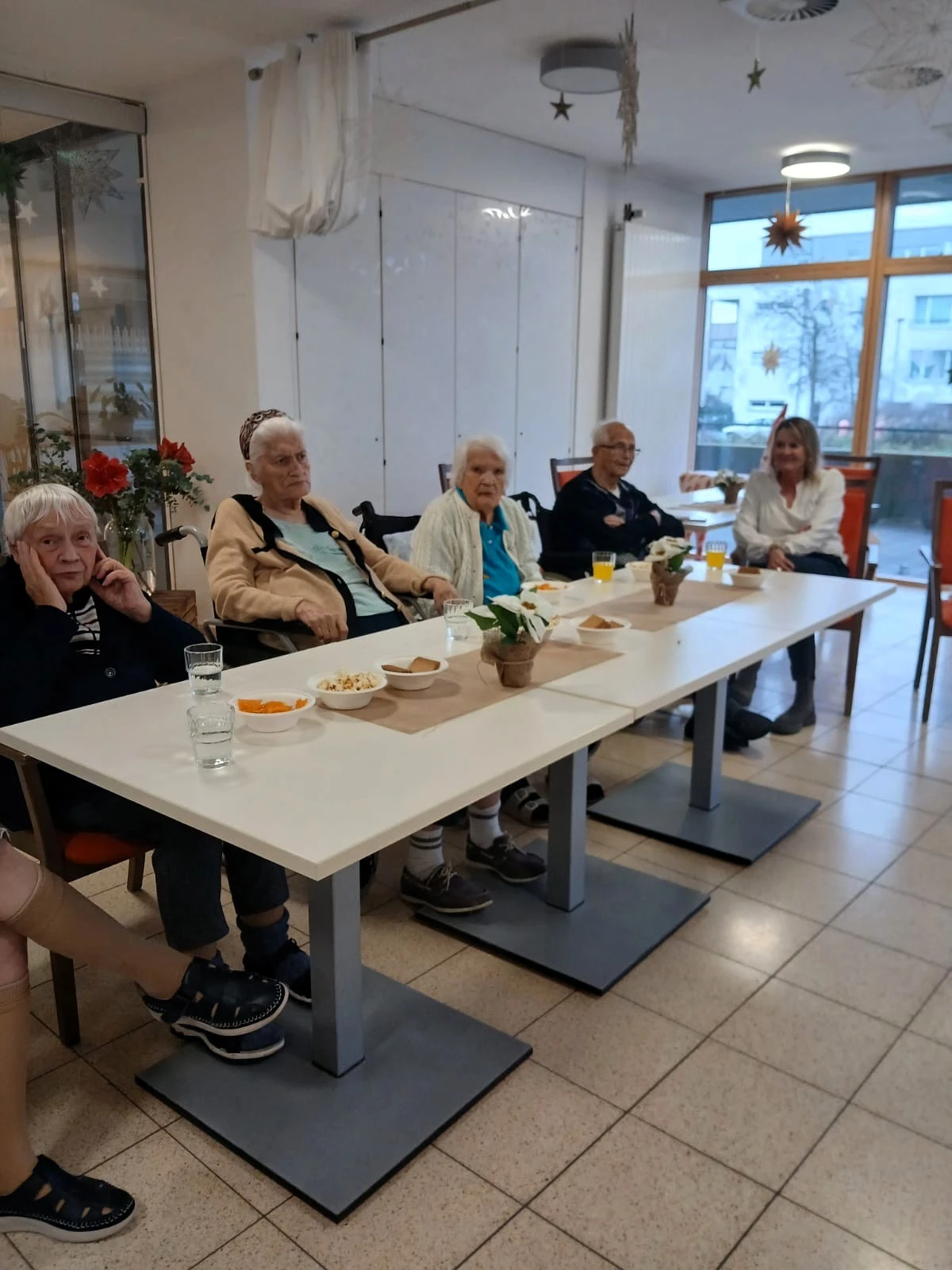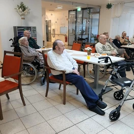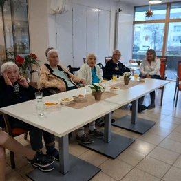 Dez 2023 - Die erste Adventsfeier in der Wohngruppe 7 liegt bereits hinter uns. Gemeinsam mit den Angehörigen singen wir Lieder und erzählen von früher. Ein festliches Abendessen mit Lachs und Forelle rundet unsere Adventsfeiern ab.