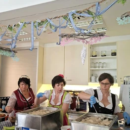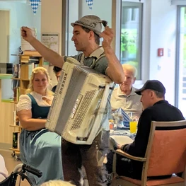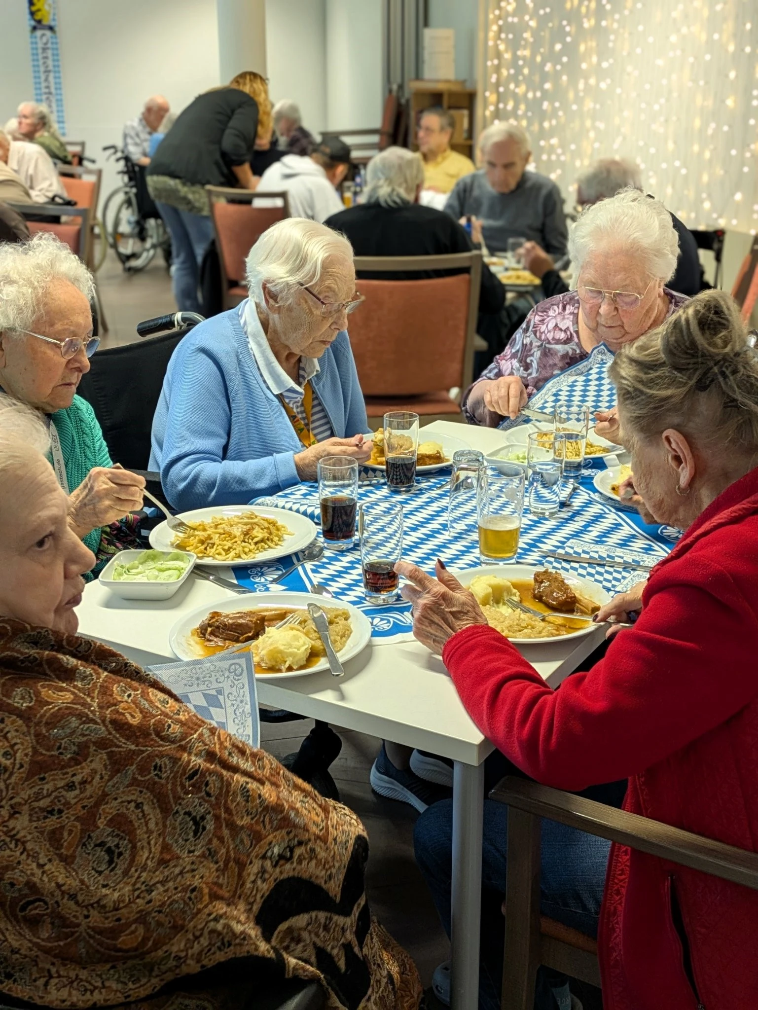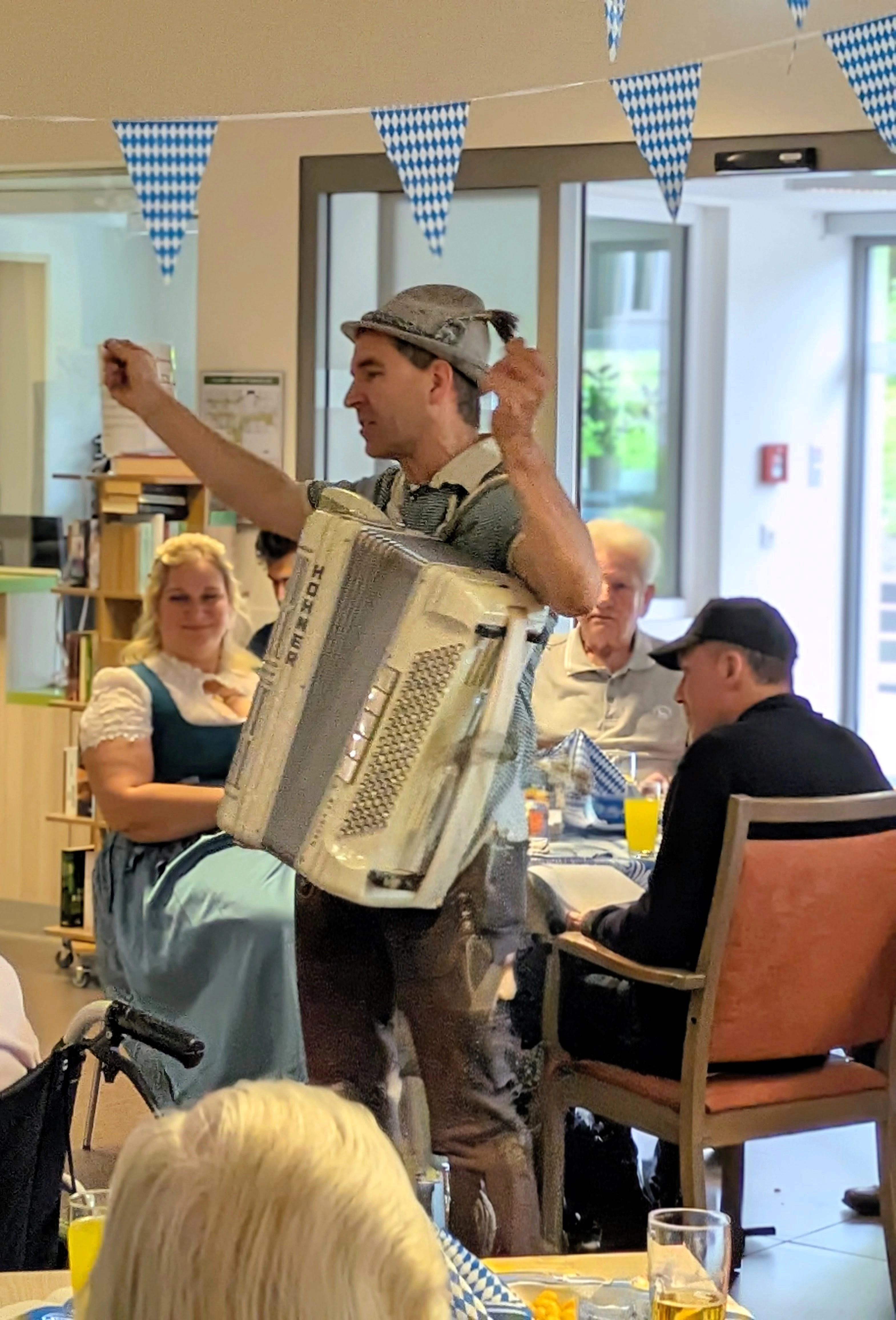 Sep 2025 - ...als im Glockengarten erneut zum Oktoberfest geladen wurde. Bei Weißbier, Softdrinks und Knabbereien kamen an die 70 Bewohnerinnen und Bewohner des Haues in der Cafeteria zusammen, um gemeinsam ein wenig bayrische Lebensart zu feiern. Das eine oder andere Dirndl war auch zu sehen.