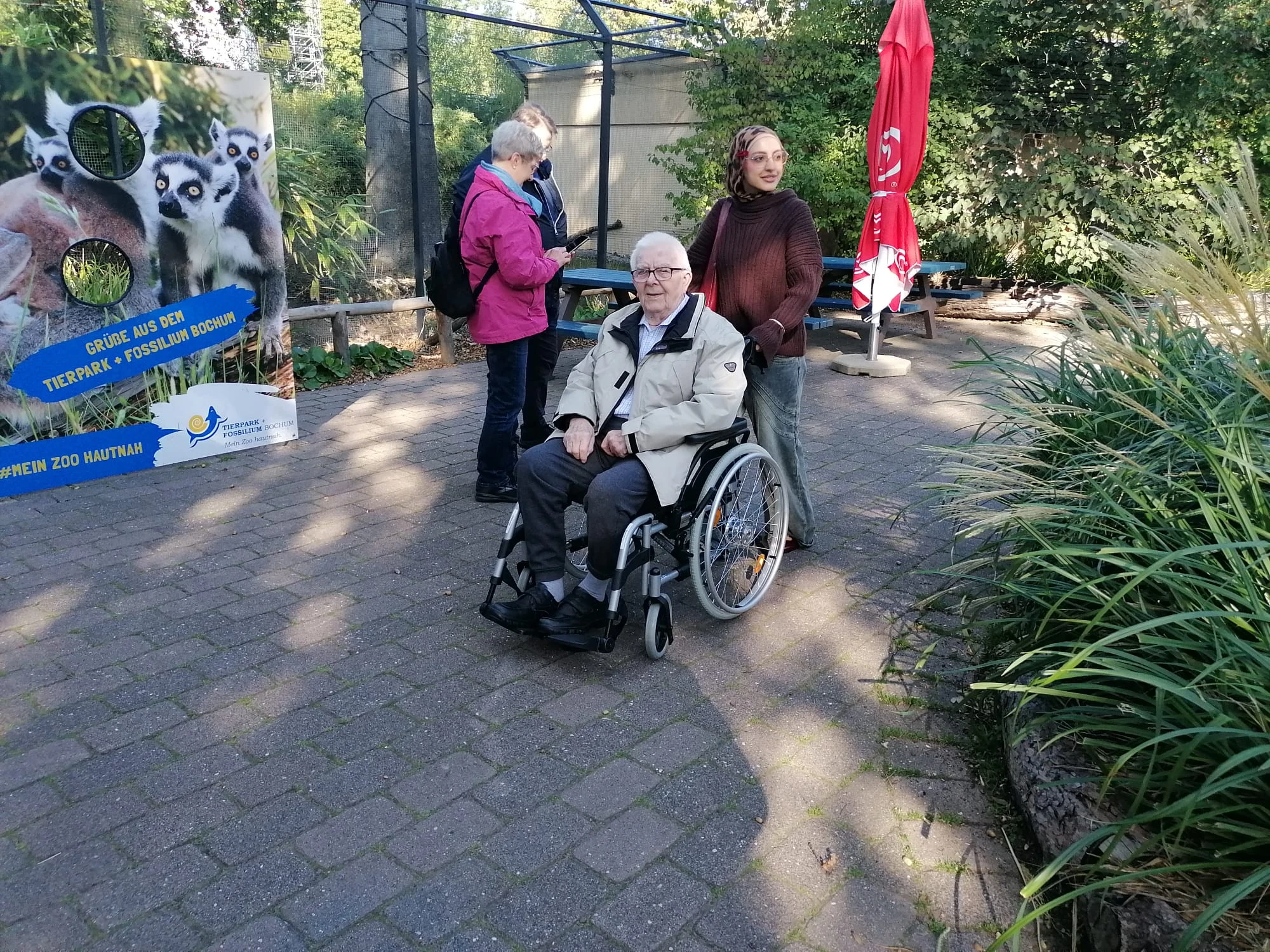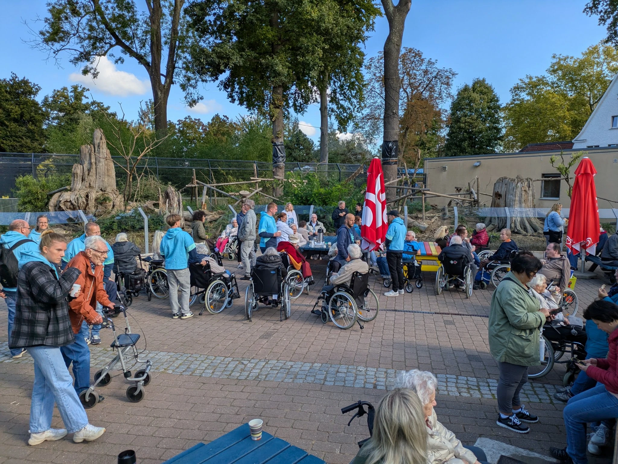 Sep 2025 - Nachdem der zuerst geplante Termin im Juli wegen zu großer Hitze abgesagt werden musste, war uns Petrus an unserem Ersatztermin wohl gesonnen. Bei strahlendem Sonnenschein machten sich 34 BewohnerInnen und 19 MitarbeiterInnen auf den Weg in den Tierpark Bochum. Eine größere Gruppe fuhr mit einem gemieteten Linienbus, andere, weniger mobile BewohnerInnen wurden mit Krankentransporten zum Tierpark gebracht.
