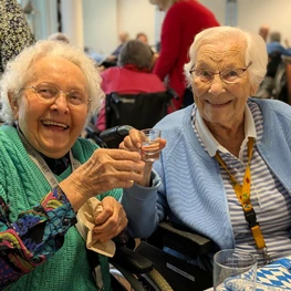 Feb 2024 - Am 8. Februar war es endlich wieder so weit: Unser Glockengarten startete die Karnevalssaison. In ausgelassener Stimmung feierten wir mit fast 60 Jecken Weiberfastnacht. Das Programm gestalteten unser Hausmusiker Gregor Winkler an Flügel und Keyboard sowie die schwungvolle Entertainerin Brigitte Langner, die sich in unzählige verschiedene Kostüme warf und Lieder und Witze mit Berliner Schnauze zum Besten gab. Es wurde viel gelacht, gesungen, geschunkelt und getanzt. Mit Kaffee und Berlinern sowie Knabbereien, Bier und Eierlikör war zudem für das leibliche Wohl gesorgt. Auch Agnes Winkelhardt, bald 100 Jahre alt, bestand immer wieder darauf, aus ihrem Rollstuhl aufzustehen, um mit ihrer Betreuerin Christiane Schweihoff etwas zu tanzen (letztes Foto). Nach zwei Stunden hatten sich alle Beteiligten verausgabt und zogen zufrieden zurück in ihre Wohnbereiche. Nicht ohne zu versichern, dass es schon bald einer Wiederholung bedarf.