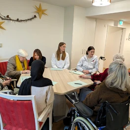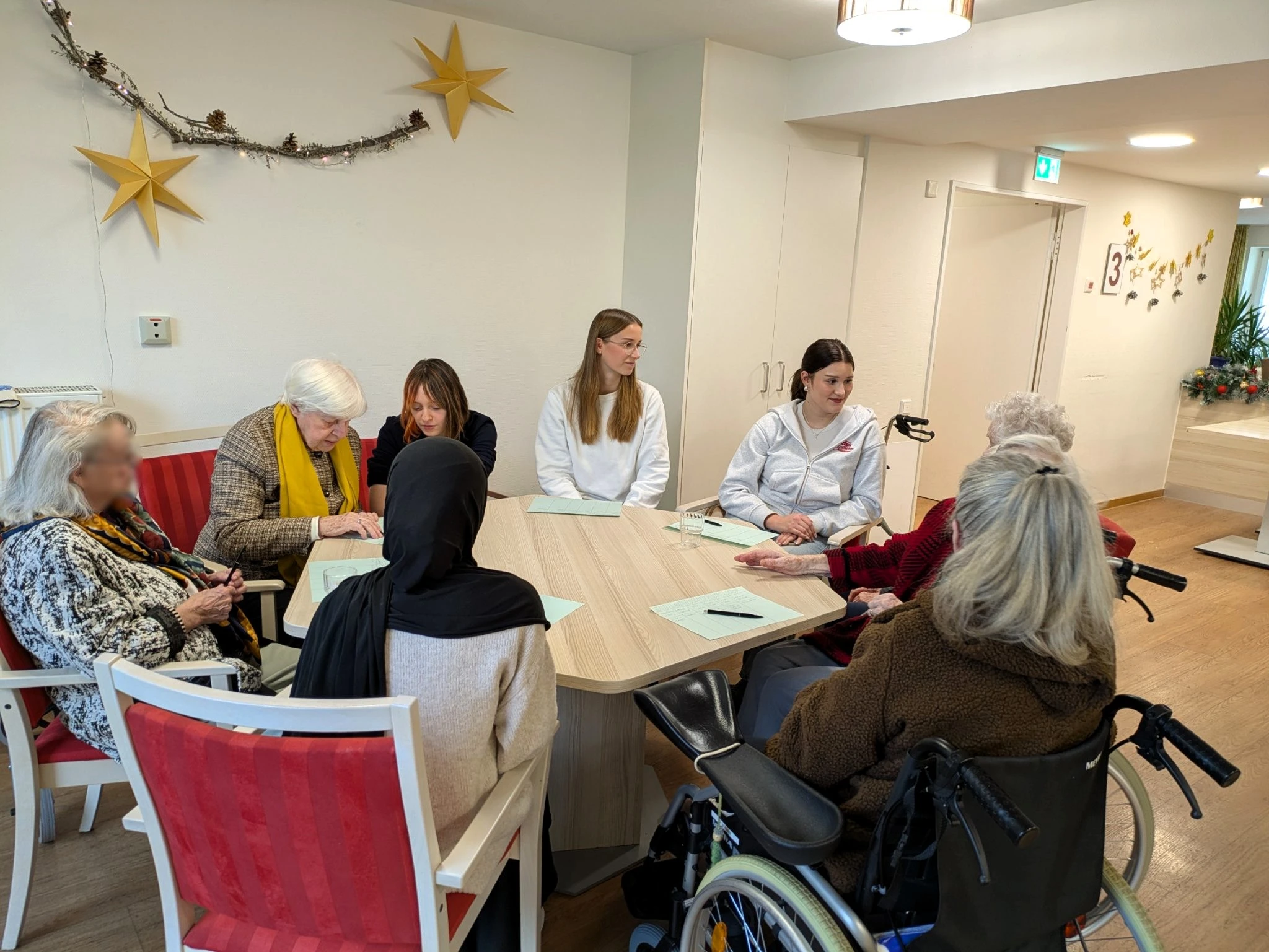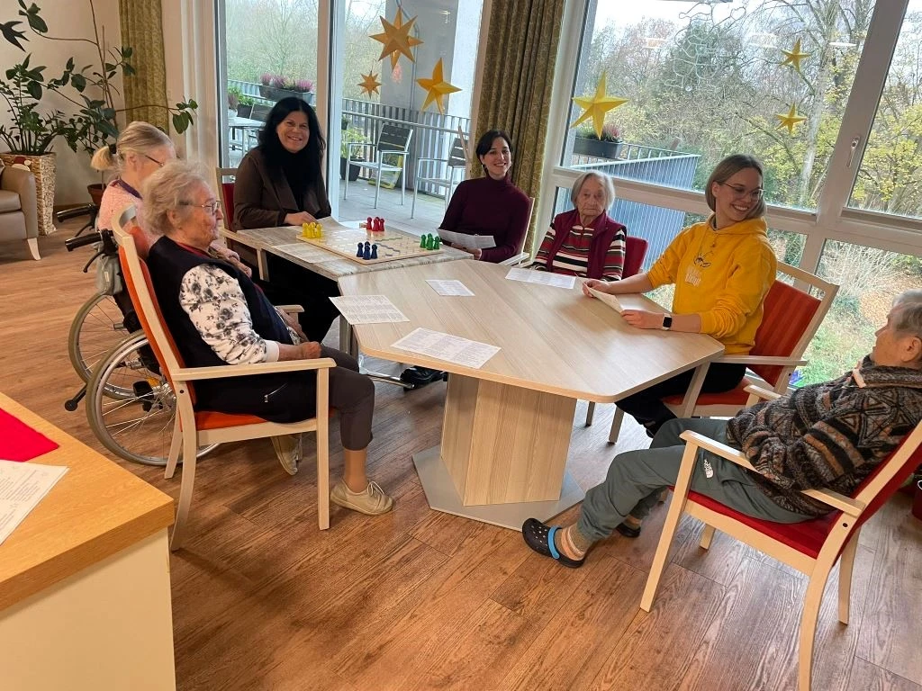 Insgesamt viermal besuchten uns die SchülerInnen der MaxQ-Schule in Wattenscheid und brachten viele Ideen und Materialien mit, um unsere Bewohnerinnen und Bewohner in Schwung zu bringen. Im Oktober erst hatten die 20 Schülerinnen und Schüler ihre Ausbildung in Ergotherapie begonnen. Und nun ging es schon direkt in die Praxis. Mit viel Freude, Elan und Einfallsreichtum beschäftigen sie sich in Kleingruppen auf den Etagen mit den Senioren. Der „frische Wind“ tat allen gut. Es wurde unter anderem gebacken, gespielt, gemalt, gebastelt, „gequizzt“ oder mit Ballons, Bällen und Musik der Körper in Schwung gebracht. Dabei ergaben sich auch viele gute Gespräche, die die Generationen und Kulturen miteinander verbanden.