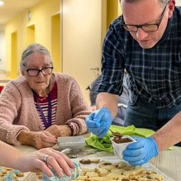 Mär 2024 - Rechtzeitig zum Osterfest wurden die Bewohnerinnen und Bewohner der Hausgemeinschaft 3 in der Küche aktiv. Es wurden leckere Kekse mit österlichen Motiven gebacken und verziert. Unsere Bäckerinnen und Bäcker waren mit Eifer dabei und der ganze Wohnbereich freute sich über die Naschereien.