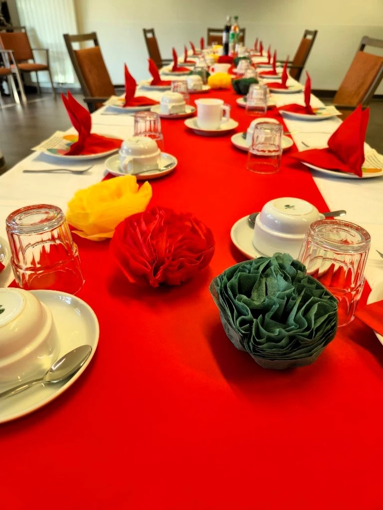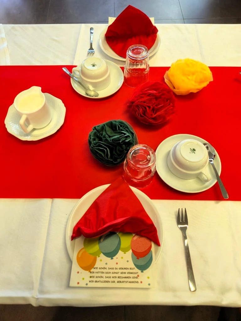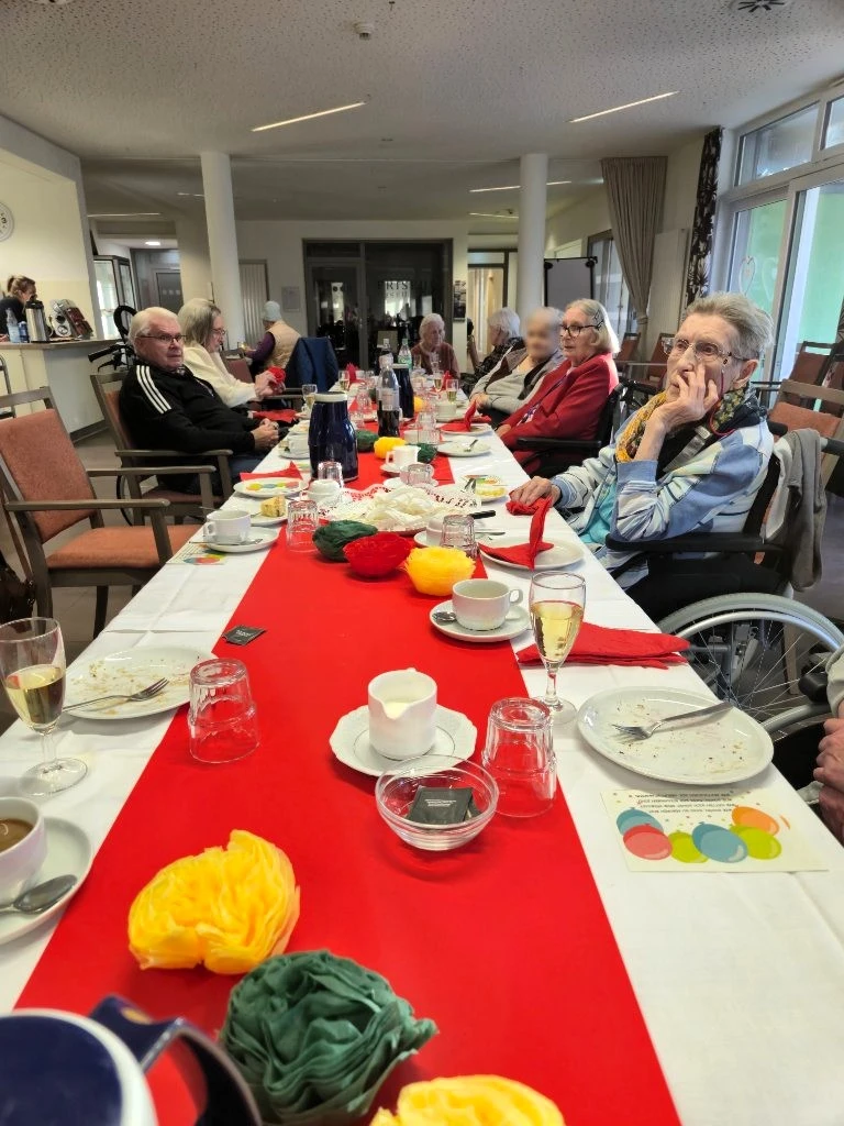 An einem liebevoll gedeckten Tisch kamen alle zusammen. Bei leckerer Torte, frisch gebrühtem Kaffee, einem Glas Sekt sowie verschiedenen Softgetränken herrschte eine fröhliche und gemütliche Stimmung. Schnell entwickelten sich lebhafte Gespräche: Erfahrungen und Erinnerungen wurden ausgetauscht, und es wurde erzählt, wie früher Geburtstage gefeiert wurden – mit vielen kleinen Anekdoten, die für Lachen sorgten.