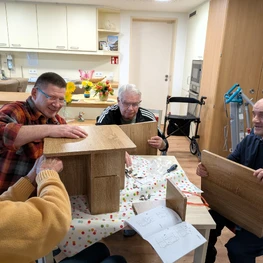 Jul 2024 - Das dachten sich auch einige Bewohnerinnen und Bewohner des Glockengartens, als neulich bei uns „Die Werkzeugkiste“ bei uns zu Besuch war. Im Rahmen des Projekts Atelier_Vital konnten wir Tobias Marquardt mit seiner mobilen Werkbank insgesamt dreimal bei uns im Haus willkommen heißen. Dabei wurden unterschiedliche Objekte aus Holz gefertigt. Die Teilnehmenden waren dabei auf voller Linie gefragt. Es wurde ausgemessen, angezeichnet, selbst gesägt, geleimt und geschliffen. Für den einen eine altbekannte Tätigkeit, bei der schöne Erinnerungen an früher aufkamen. Für manch einen aber auch eine völlig neue Erfahrung, die den Horizont noch einmal erweiterte.