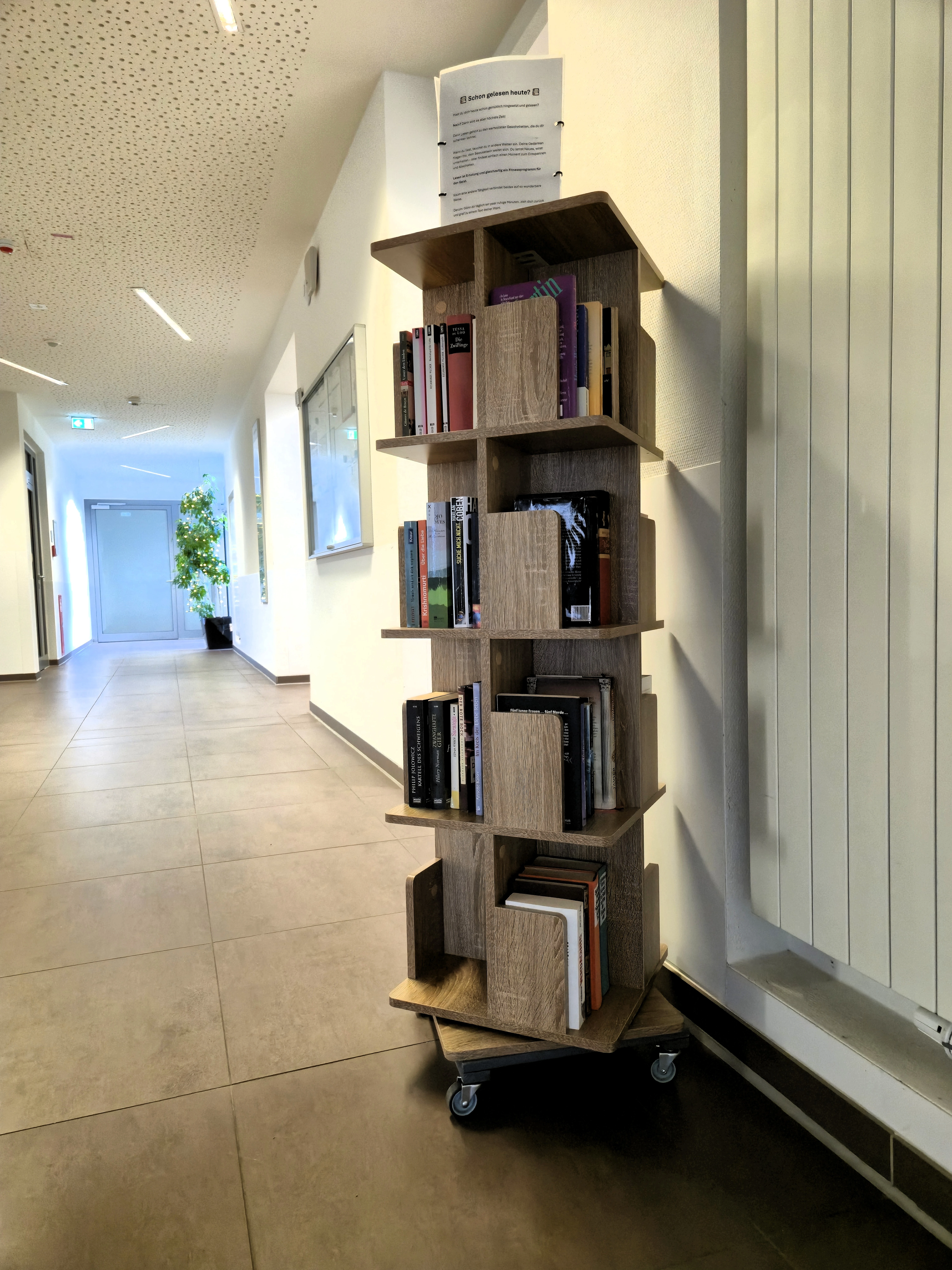 Mittlerweile steht das Bücherregal schon ein Weilchen, und es herrscht ein reger Austausch der Bücher. So rege, dass von den ursprünglichen Büchern keines mehr da ist. Ein schönes Zeichen dafür, dass Lesen verbindet, Geschichten weiterwandern und das Regal genau das tut, wofür es gedacht ist: Leben, Neugier und Begegnung zu schaffen.