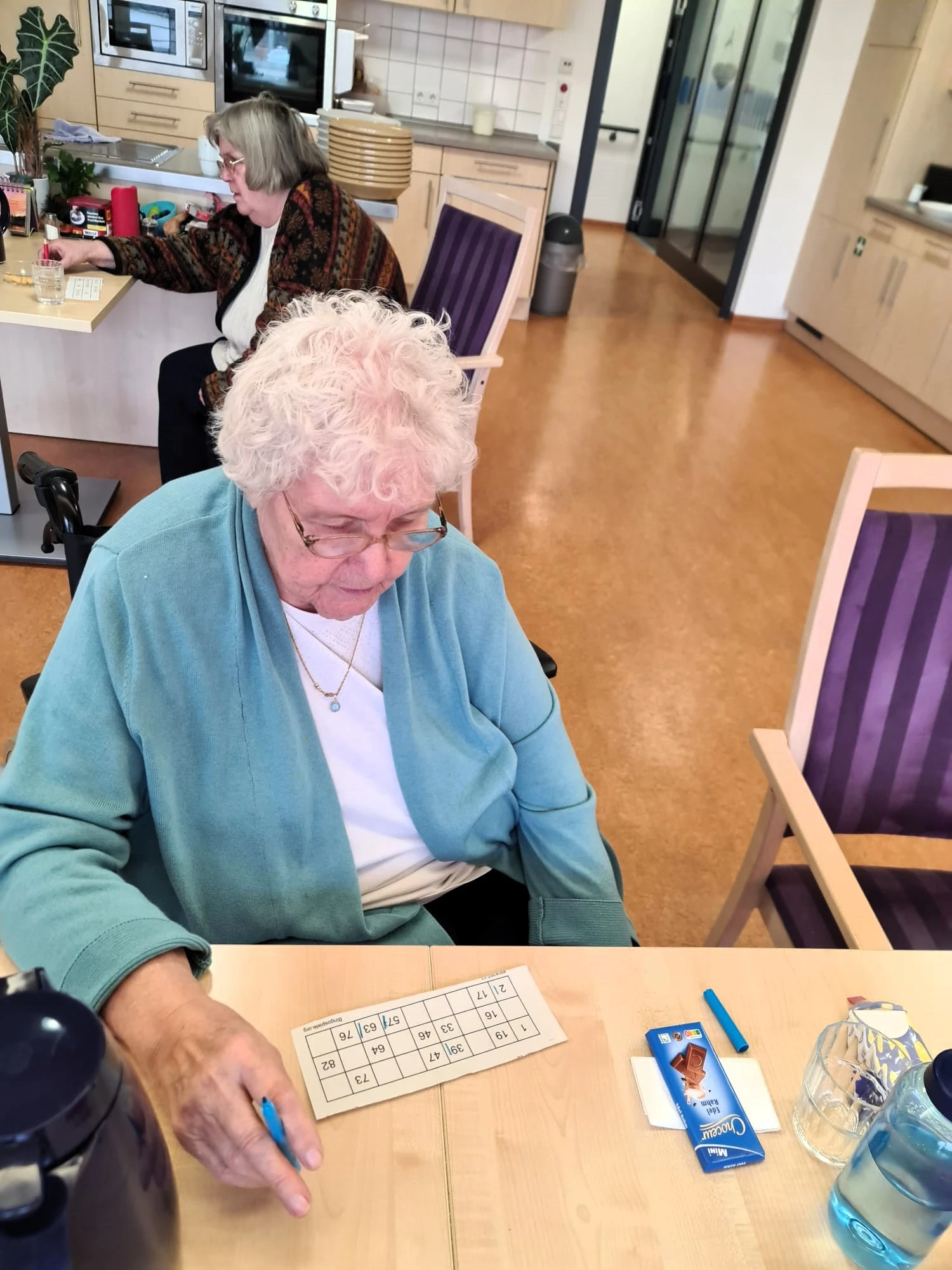 Apr 2024 - Unsere Bewohnerinnen und Bewohner hatten jetzt Lust, Bingo zu spielen. Also setzten wir dies kurzerhand um - und alle hatten ihren Spaß.