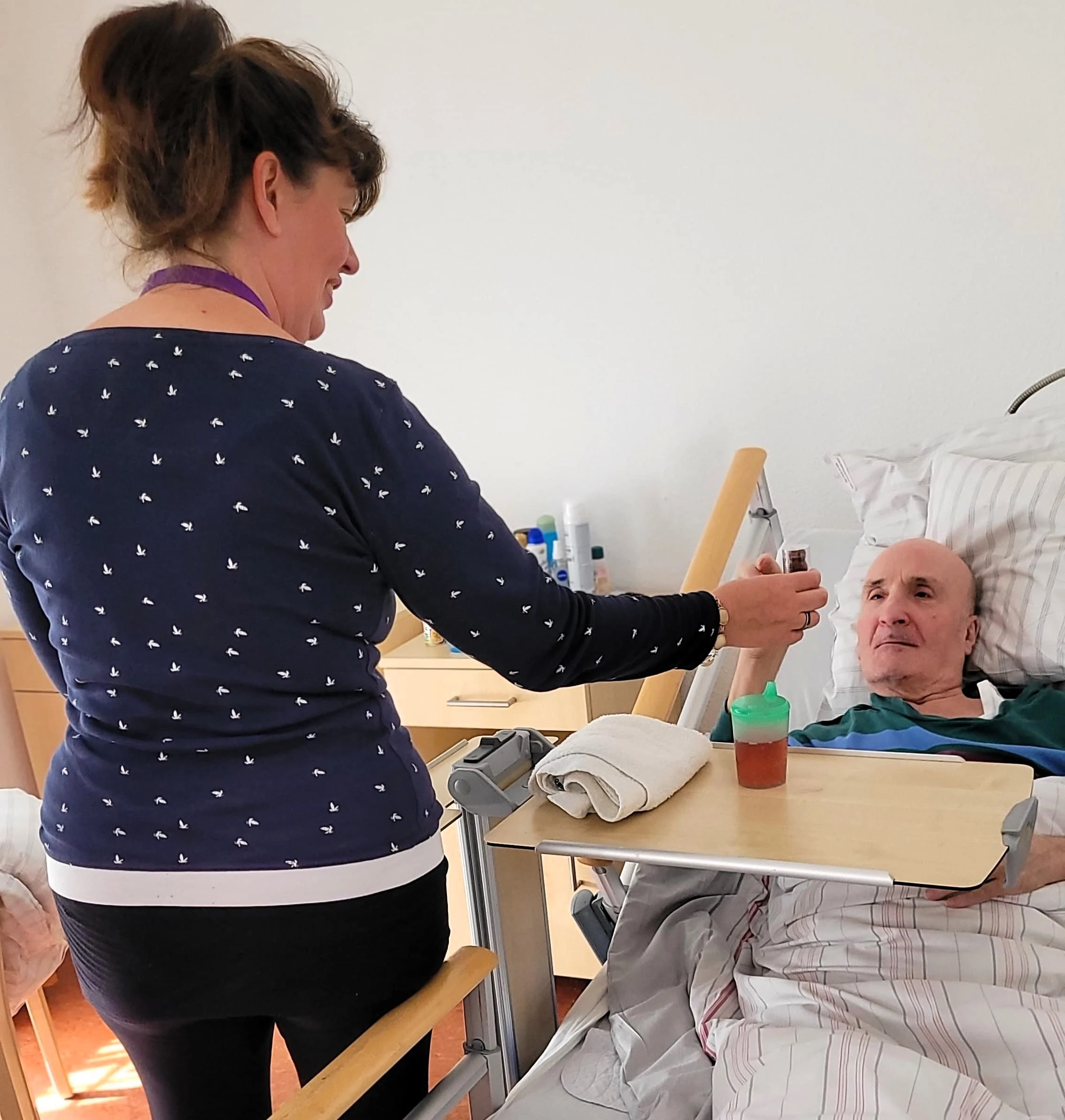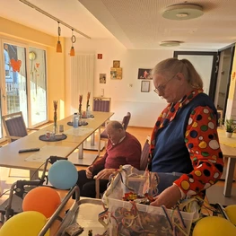 Mär 2024 - Am Ostersonntag ging unsere Betreuungskraft Martina mit einem schön geschmückten Wagen von Bewohner zu Bewohner und verteilte Eierlikör sowie ein kleines Geschenk vom Haus. Alle freuten sich über die Aufmerksamkeit und ließen sich den Eierlikör schmecken.