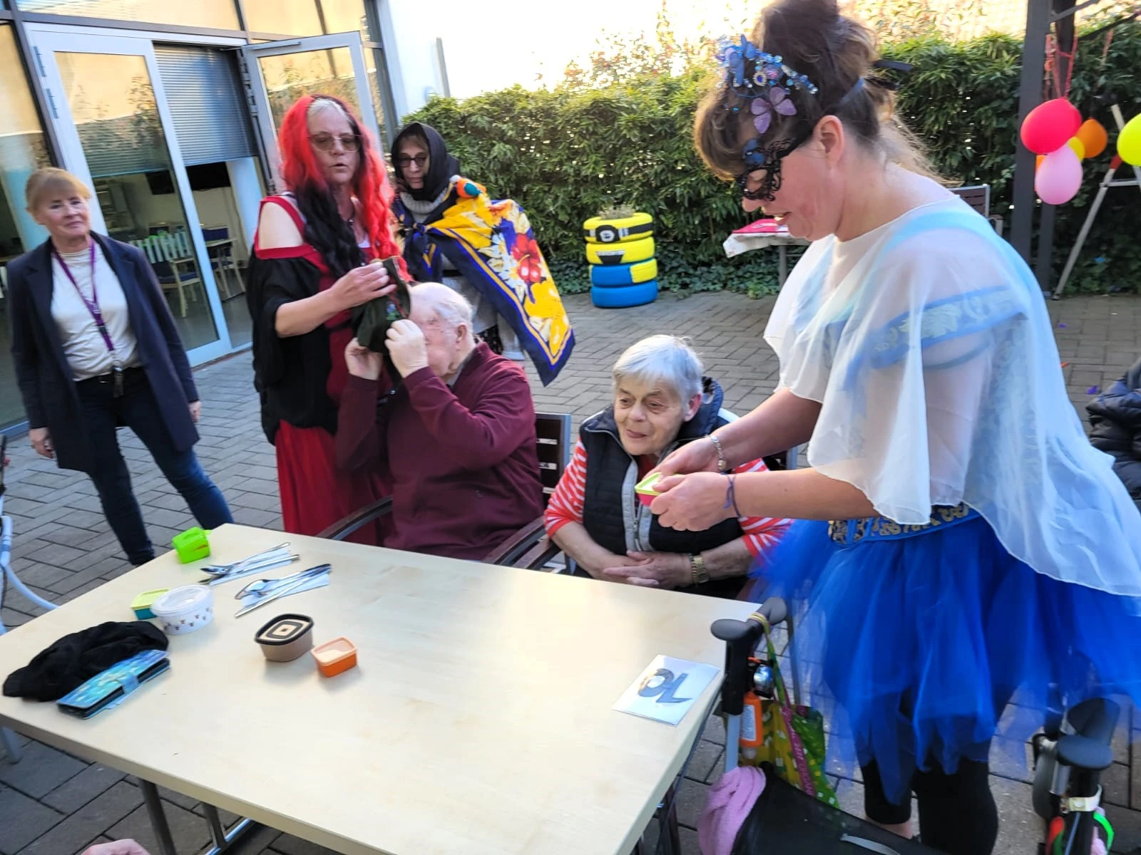 Ein besonderer Überraschungsgast war außerdem unsere Klinik-Clownin, die eigentlich auf den Wohnbereichen unterwegs war, aber natürlich gerne einmal „reinschaute“ und mit ihrem Humor die Herzen im Sturm eroberte.