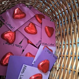 Mai 2024 - Am Muttertag verteilten wir Herzen am Stiel und ein Gläschen Sekt dazu. Die Freude der Damen war groß, vor allem beim Öffnen der Herzen.
