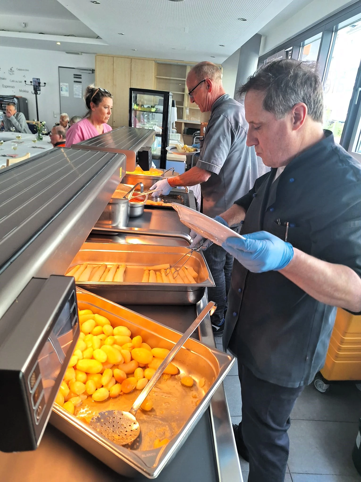 Bei schöner Unterhaltungsmusik, einem Kaltgetränk nach Wunsch und vielen Gesprächen haben wir den Nachmittag gemeinsam genossen. Es war ein Stück Lebensfreude auf dem Teller – knusprig, herzlich und einfach wohltuend.