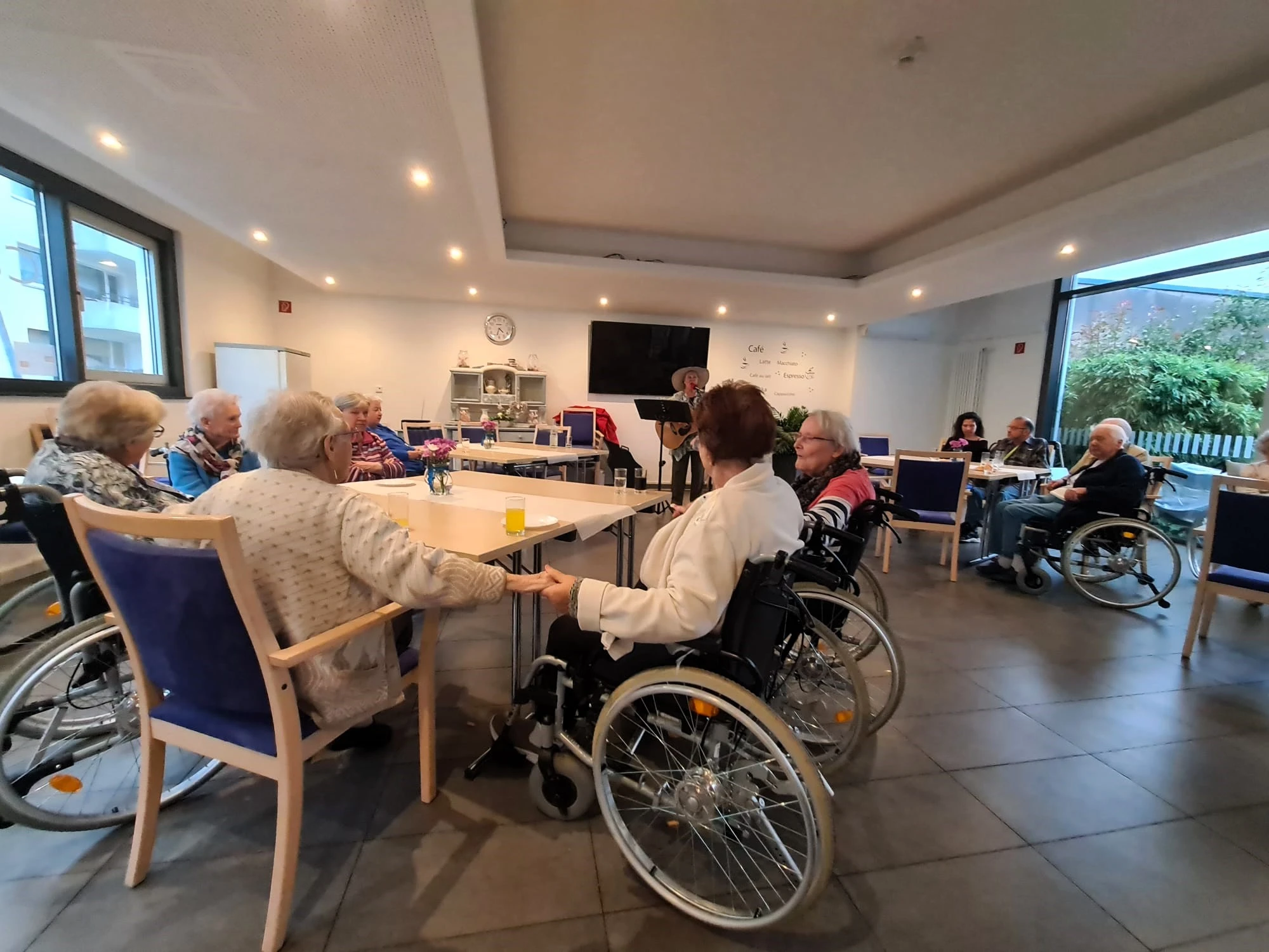Gemeinsam sangen wir bekannte Lieder, klatschten im Takt und ließen uns von der Musik mitreißen. Überall war zu spüren: Musik macht Freude – und wenn wir zusammen singen, kommt richtig gute Laune auf. Eine Bewohnerin brachte es am Ende auf den Punkt: „So viel Freude wie heute beim Singen – das ist besser als jedes Fernsehen!“