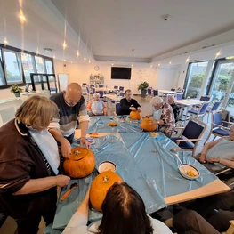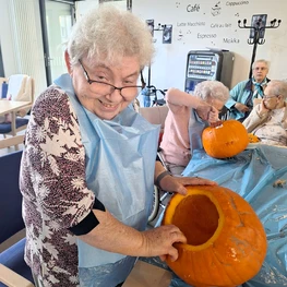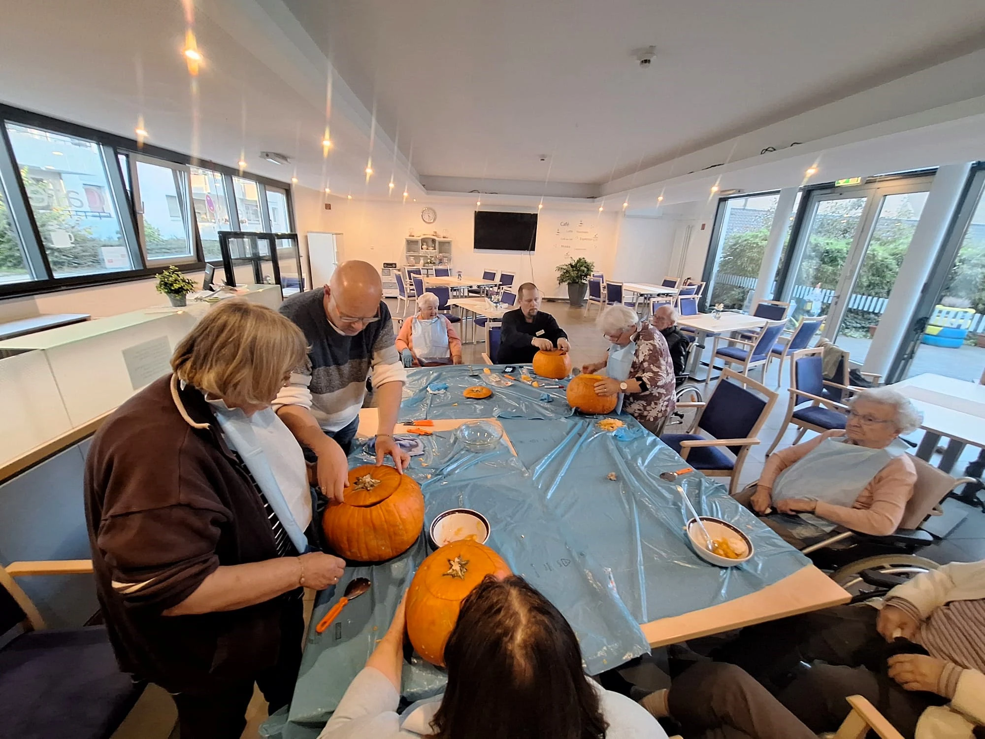 Nov 2025 - Unsere Gartentherapiegruppe hat jetzt zu einer stimmungsvollen Herbstaktion getroffen: Gemeinsam wurden Kürbisse geschnitzt und liebevoll gestaltet.