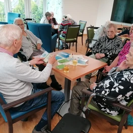 „Wir haben viele neue Spiele ausprobiert und dabei jede Menge gelacht“, erzählt Birgit Gimpel vom Sozialen Dienst. Das Besondere: Die Spiele werden zusammen mit passenden Büchern und anderem Aktivierungsmaterial direkt von der Bücherei geliefert und später wieder abgeholt. So können wir regelmäßig Neues entdecken – ganz bequem und ohne großen Aufwand.