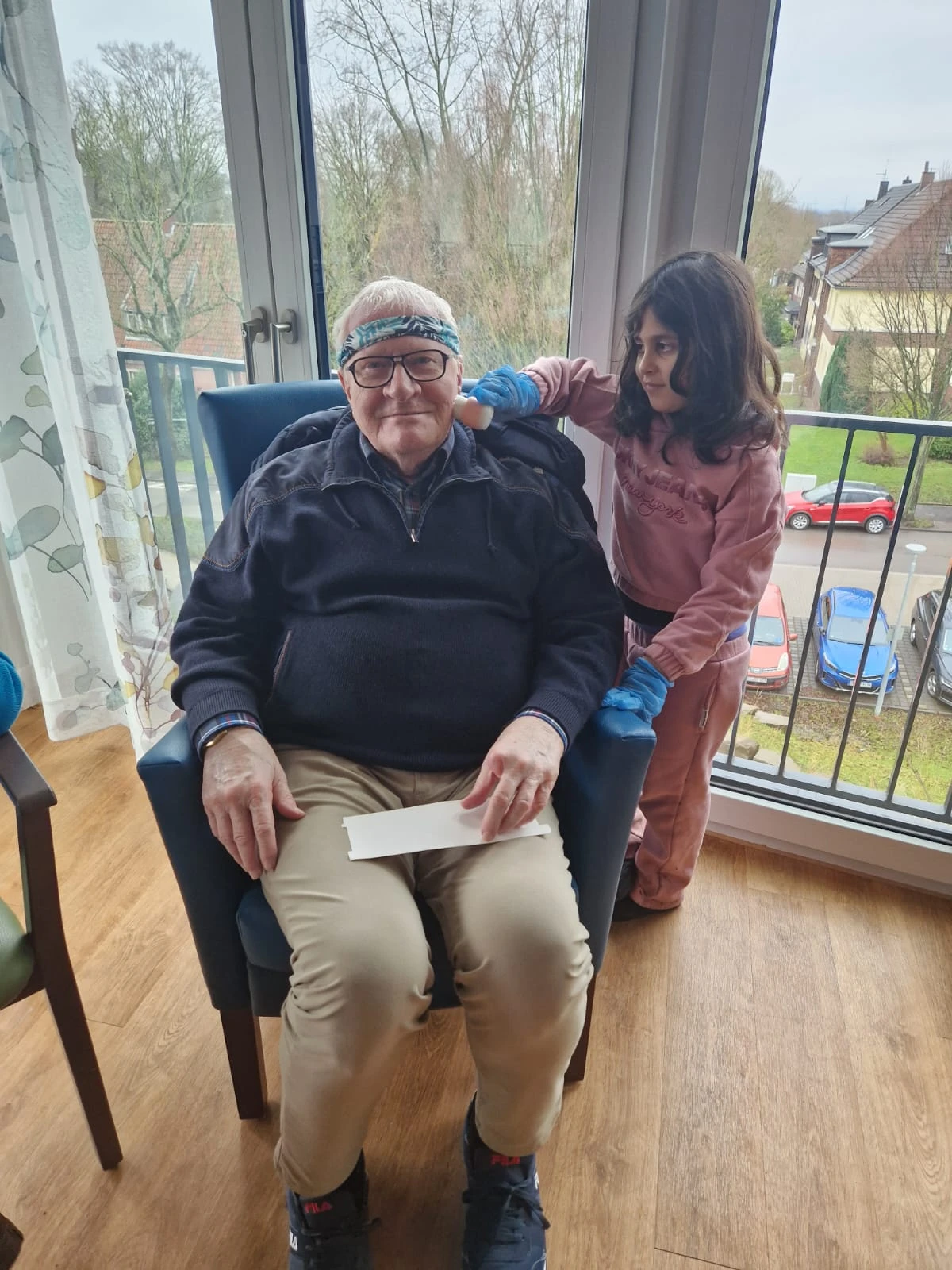 Am vergangenen Dienstag bekam dieses Angebot eine ganz besondere Note. Spontan schauten Kinder aus „unserem Kindergarten“, der AWO-KITA Moltkestraße, vorbei und unterstützten mit großer Freude das Wellness-Team. Mit viel Einfühlungsvermögen, Neugier und Herzlichkeit halfen die kleinen Gäste dabei, den Bewohnerinnen und Bewohnern einen besonders entspannenden Vormittag zu bereiten.