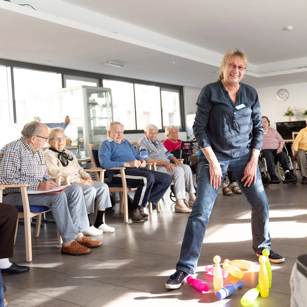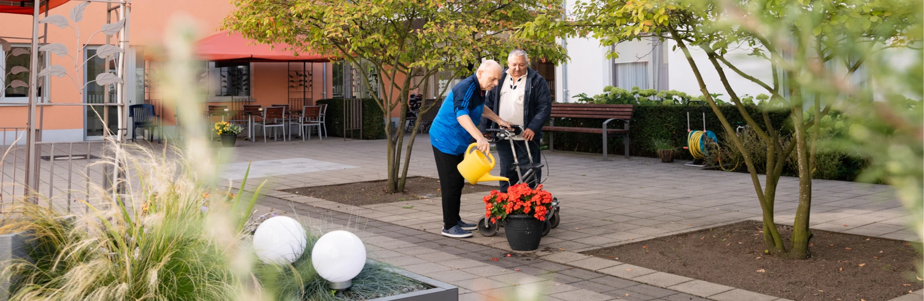 Dank sechs Gruppen, in denen jeweils 14 Bewohner ihr Zimmer haben, bleibt die Atmosphäre familiär. Eine Gartenanlage direkt am Haus lädt zu Spaziergängen ein, zahlreiche Bänke und eine Sonnenterrasse versprechen entspannte Momente, auch außerhalb der eigenen vier Wände. Wer fit genug ist, braucht mit der Straßenbahn nur zwei Haltestellen zu fahren, ehe er im Zentrum Wattenscheids ankommt – auch für Besucher ein echtes Plus. Und wer Verwandte und Bekannte nicht im Zimmer empfangen möchte, kann sie in die hauseigenen Cafeteria einladen. Auch eine Bäckerei und ein Blumenladen liegen direkt vor der Tür.